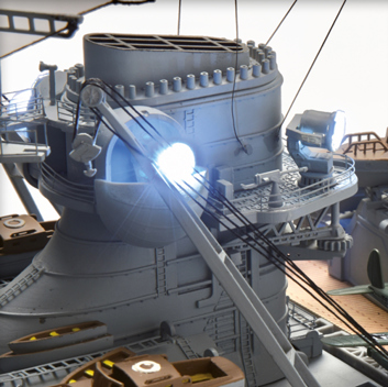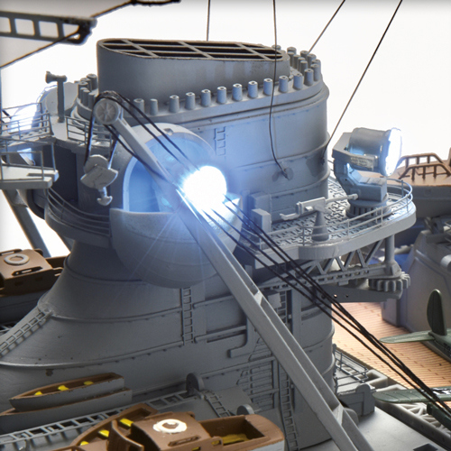 Pomocí infračerveného dálkového ovládání budete moci otáčet věžemi a děly, rozsvěcet palubní reflektory, přehrávat zvuky a lomoz. Kromě toho je trup modelu vyroben výhradně z kovu a jedna jeho odnímatelná část umožňuje pohled do turbínové strojovny vlevo.